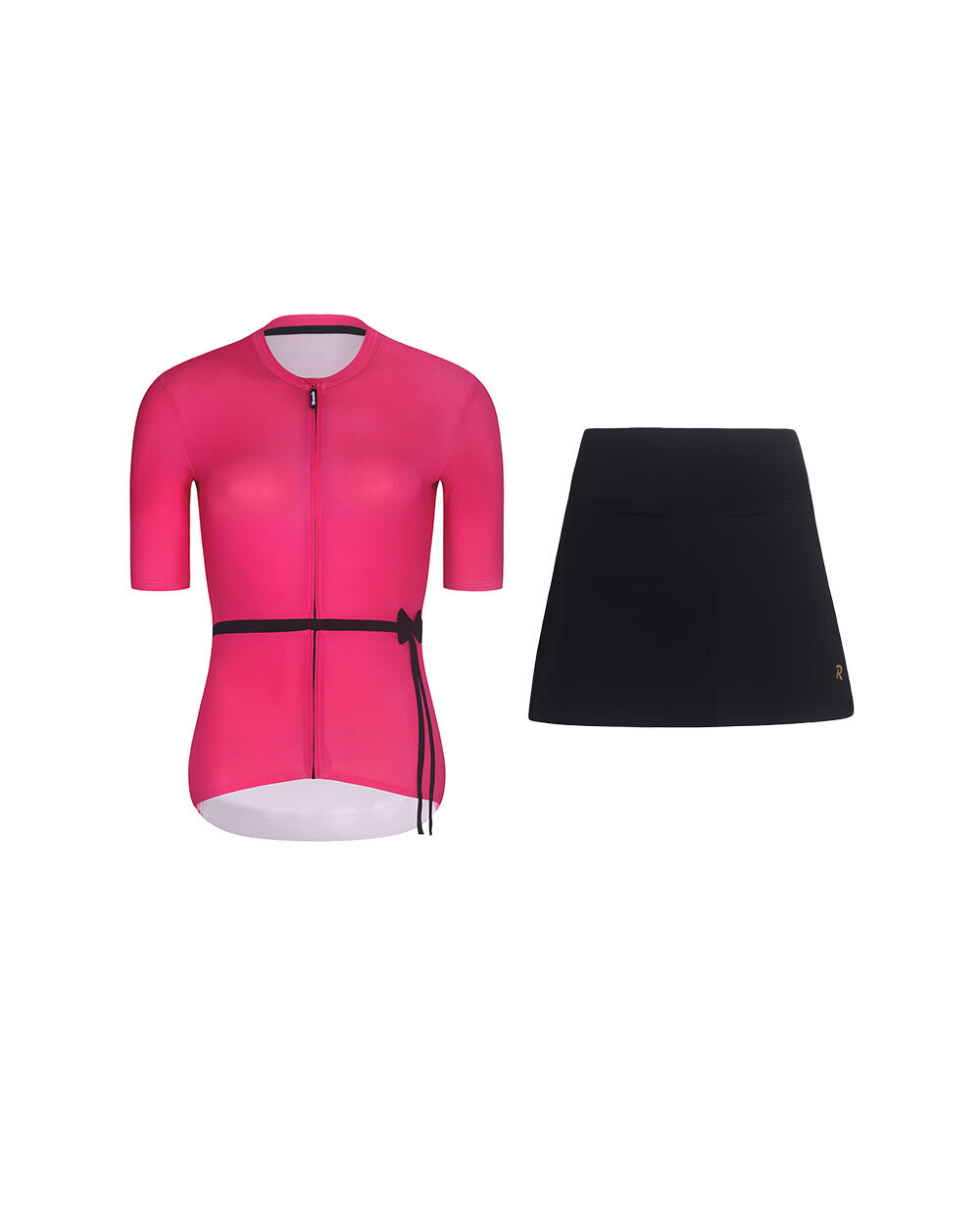 The black MOVE cycling skirt perfectly complements the jersey and offers a sporty-elegant look with an emphasis on freedom of movement. It is made from a lightweight, stretchy and breathable fabric that adapts well to the body, shaping it and enhancing comfort. The integrated elastic shorts provide security and comfort with every kilometre, whether during training, a ride, city cycling or other sporting activities. This set is the ideal choice for women who want to look great on their bike, feel confident and enjoy maximum comfort at the same time.