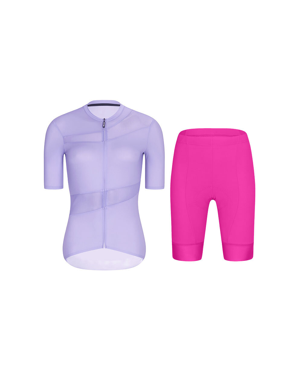 The Rivanelle GLAMOR & DYNAMIC ELITE women’s cycling set is the ideal choice for all female cyclists who want to combine style, comfort and functionality in one perfectly coordinated outfit. The combination of the purple GLAMOR jersey and the cyclamen DYNAMIC ELITE shorts creates a striking, feminine yet sporty and elegant look that will make you stand out on the road.