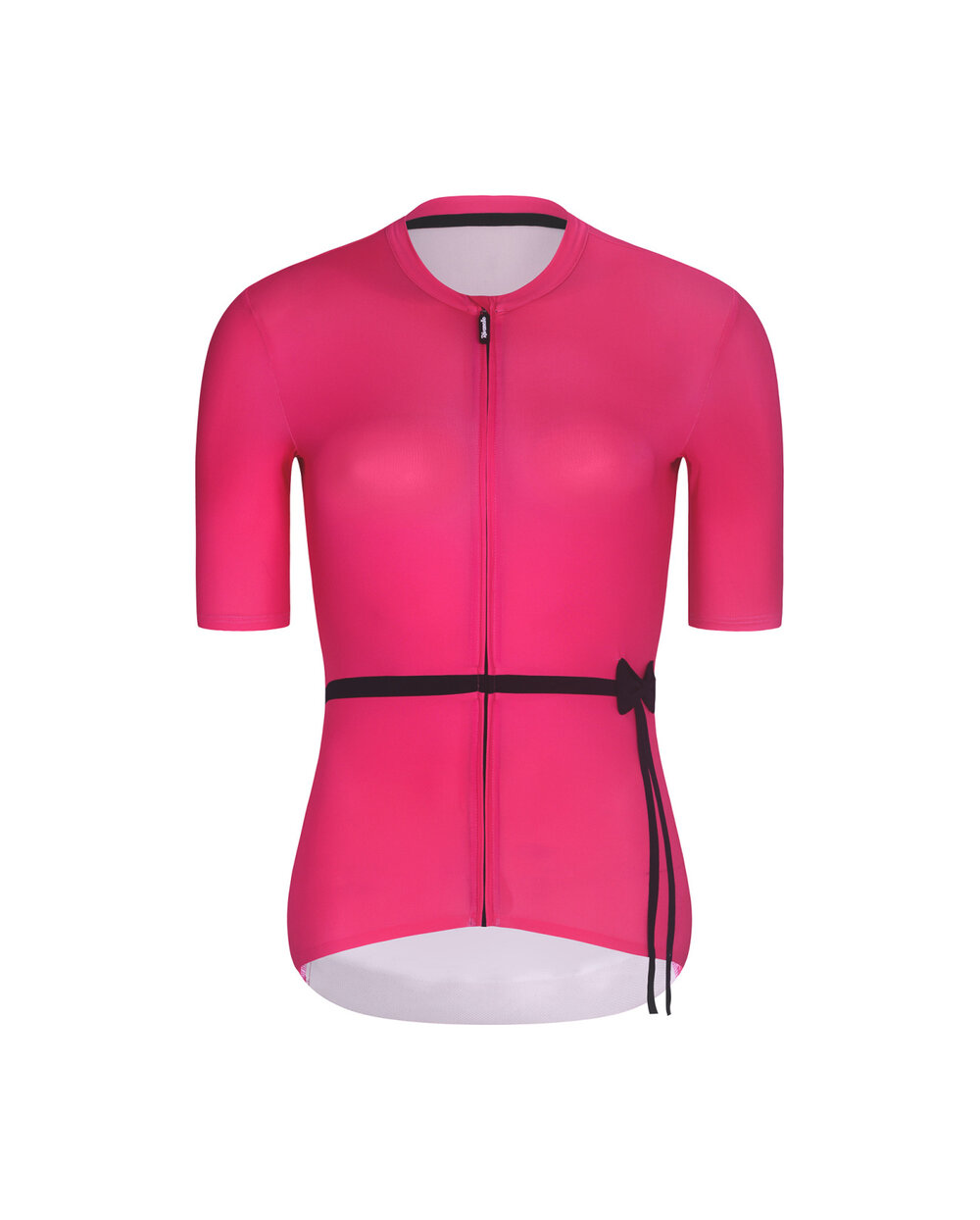 The LOVELY jersey catches the eye at first glance with its unique design, featuring a charming bow on the side and elongated ribbons that give it a delicate and feminine character. The lightweight, high-quality and exceptionally breathable fabric feels pleasant against the skin; thanks to its elasticity, it adapts well to the figure and accentuates its contours. It naturally features a full-length front zip with a protective flap at the neck, a triple rear pocket complete with a zipped security pocket, and a seamless hem with an anti-slip print that helps keep the jersey in place.
