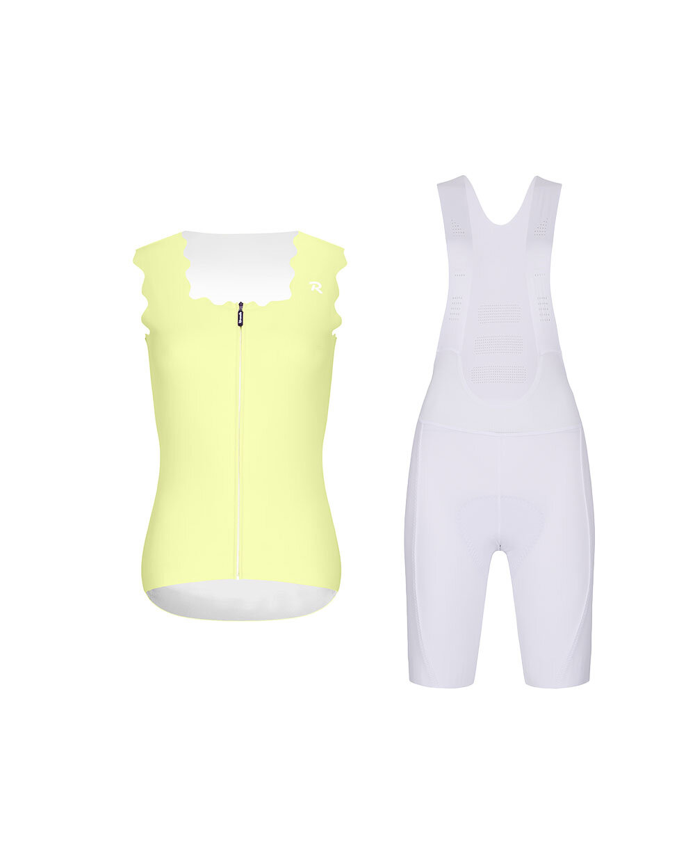 The Rivanelle SCALLESSA & NOVEL PRO women’s cycling set is the perfect combination of style, comfort and performance for cyclists who want to look great on their bikes whilst feeling completely at ease. The set combines the original SCALLESSA sleeveless jersey in yellow with unique wavy edging and the NOVEL PRO white cycling shorts with braces, designed for demanding training sessions and long hours in the saddle. The jersey features a modern, feminine design, with wider wavy straps and a square neckline that flatters the figure. Practical features include a full-length front zip with neck protection, a triple rear pocket and a seamless hem with anti-slip print for a secure fit whilst riding. The NOVEL PRO trousers add a professional level of comfort to the set. They feature an ergonomic cut, high breathability, moisture-wicking fabric and a foam cycling pad that provides support and cushioning even on long rides. Lightweight, durable and elastic materials also offer gentle compression, support freedom of movement and help reduce muscle fatigue. This set is an excellent choice for both competitive and recreational cycling, intense training sessions and stylish rides. If you’re looking for a combination of functionality, premium comfort and a distinctive feminine design, the Rivanelle SCALLESSA & NOVEL PRO won’t let you down.
